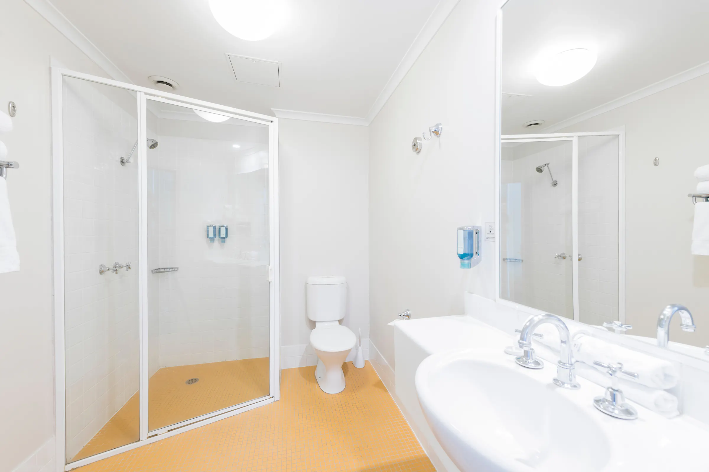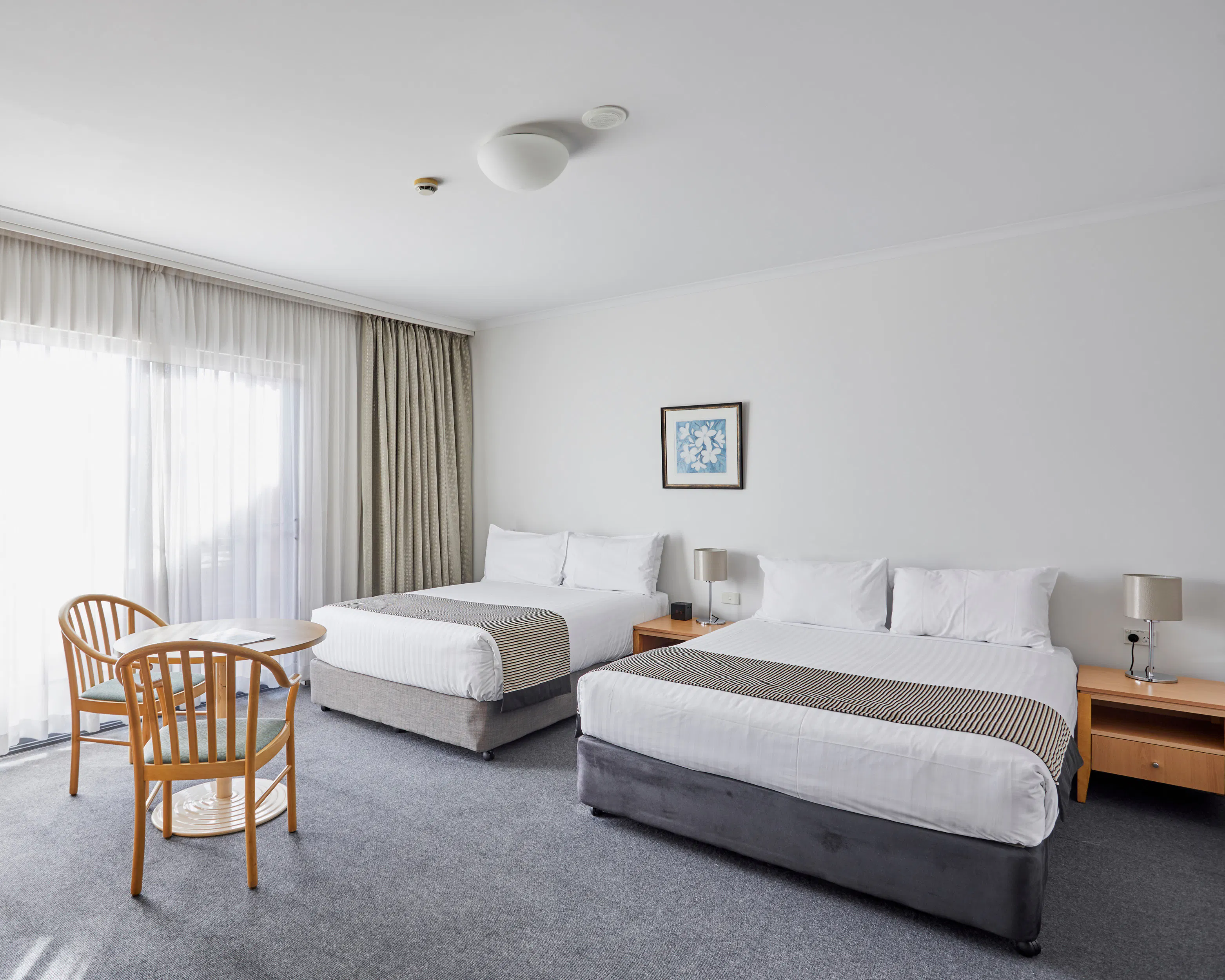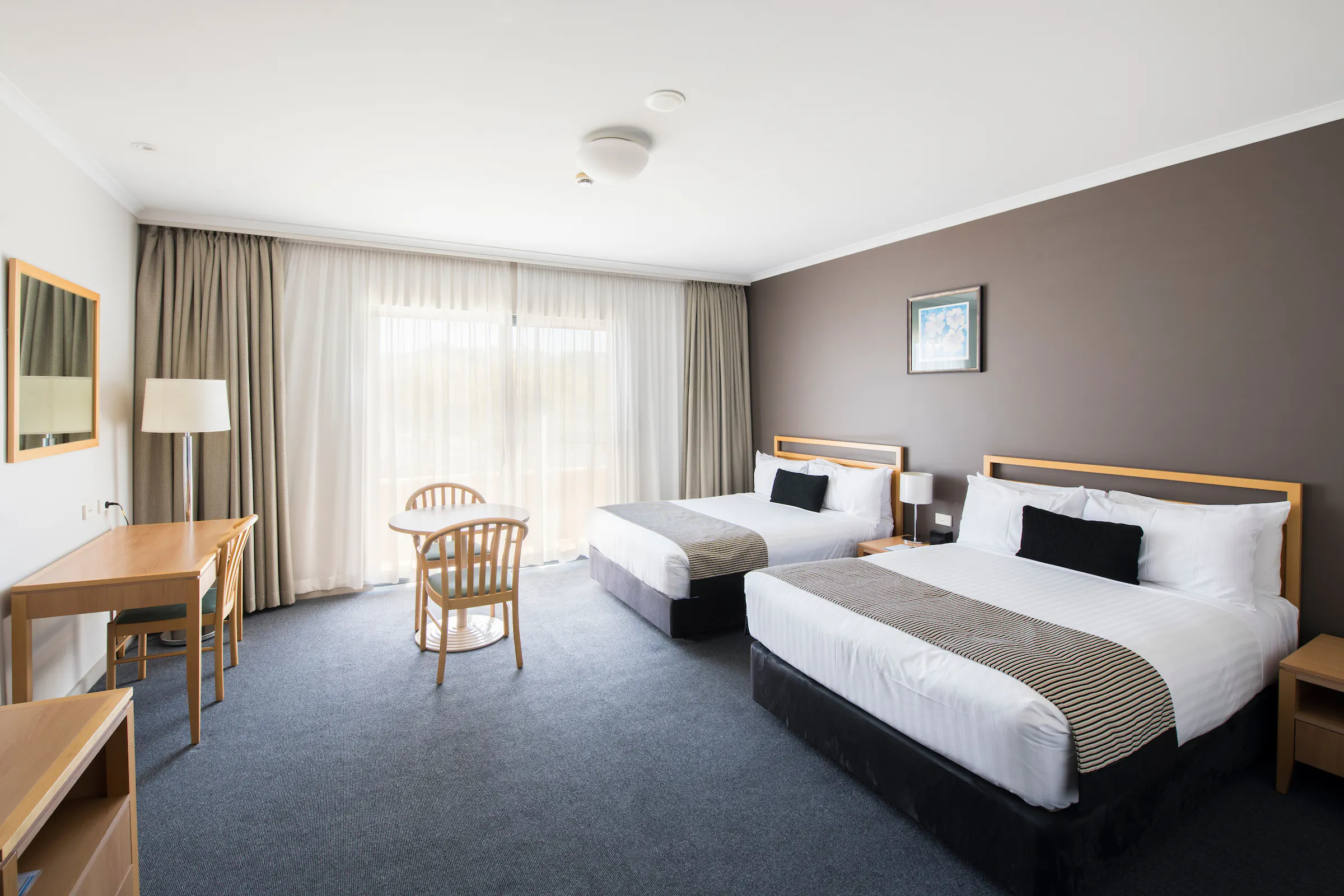 The Twin Double Room is large and spacious, featuring two double beds. Charges apply for additional roll bed (available upon request).